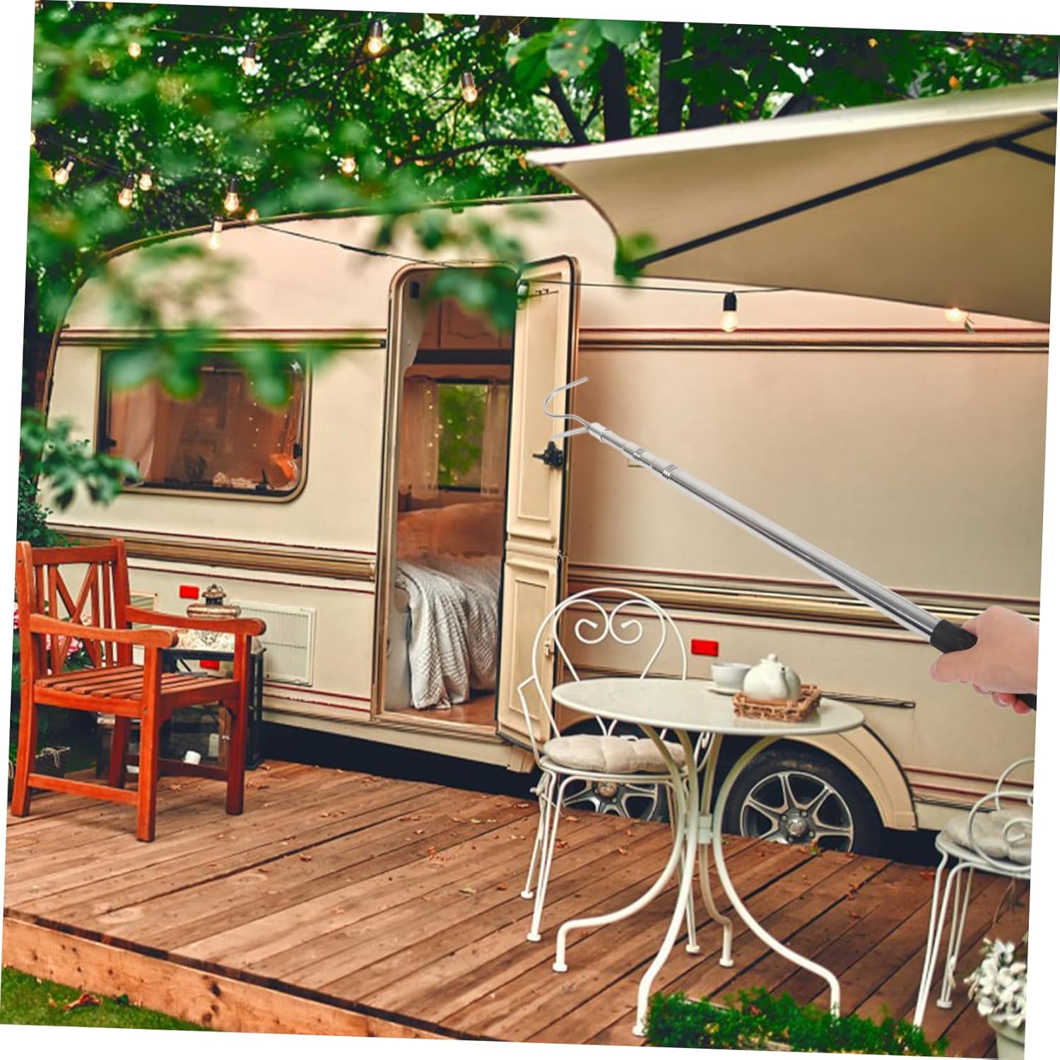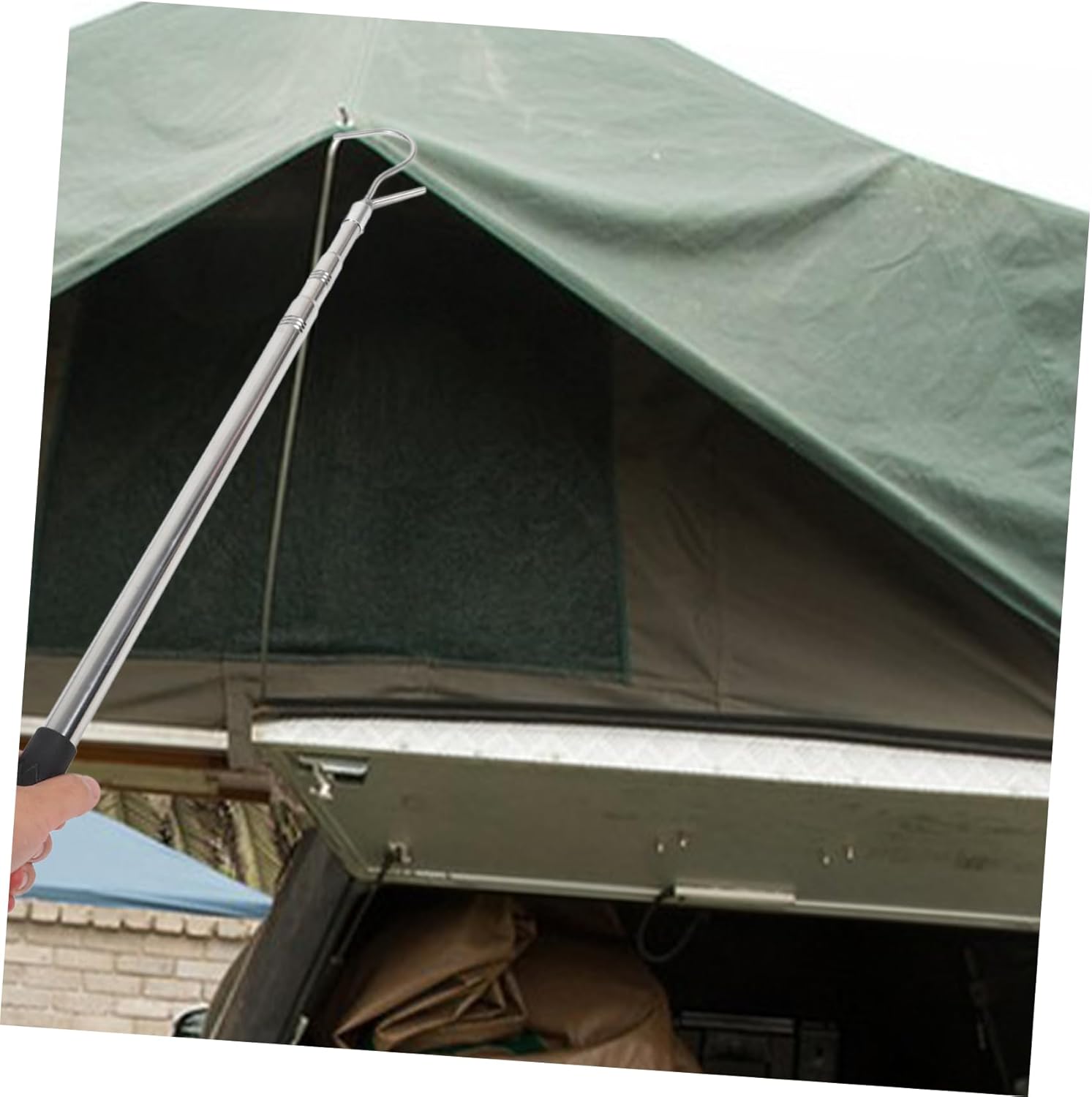 Package Include 1 x Puller rod with hook Features -Color:Black pulling tool -Material:Stainless steel sunshade adjustable rod -Adjustable: 60cm-1.5m camping tool -Size:150.00X10.00X2.00cm/58.95X3.93X0.79in camping awning puller -With this awning pulling rod, you can pull up awning more convenient and easily, saving time or effort window blind hook stick. -This pulling rod is for setting up tents, shelter and camping awnings awning rod opener. -The tool features a pole with an included hook. This awning pulling rod is practical tool for camping or picnic pull hook. -A must-have tool for outdoor enthusiasts. This is portable and easy to carry and use curtain pull rod. -This rod is is durable and stable, with a quick extension and retraction feature awning opener.Goods Informationawning rod opener Its portable design makes it easy to carry and use wherever you go.camping tool Whether you're setting up a tent, seeking shelter, or enjoying a camping awning, this puller is .pull rod This RV Awning Opener Puller is a must-have tool for any outdoor enthusiast.window blind hook Crafted with stable materials, it ensures durability and reliability.sunshade accessory With its quick extension and retraction feature, you can save time.camping accessory The pole can be easily retracted, and the included hook adds convenience