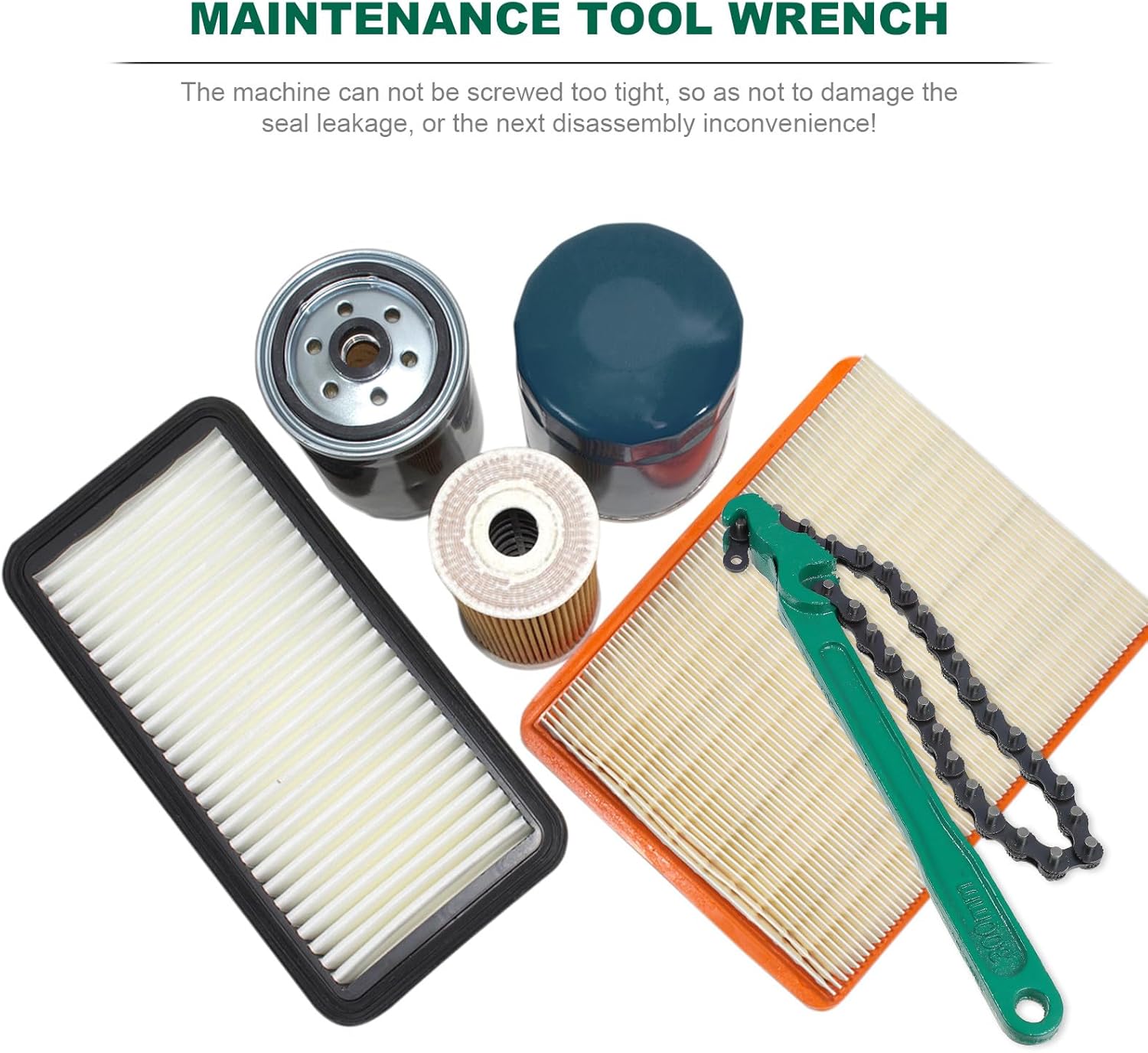 Package Include 1 type wrench 1 x chain type wrench Features - Material: steel. - Color: Green. -Product Info:Wrench Tool - Size: 30.50X4.00X2.50cm/11.99X1.57X0.98 inch. - It is manufactured with professional technology to ensure the of the product and can work for a long time oil filter wrench removal tool. - Comfortable handle makes it easy to operate. Sturdy and heavy duty, not easy to break during use oil filter wrench. - The oil filter spanner is made of steel. This kind of material is much stronger than the normal materials. - Ergonomic design, comfortable to grip and use. Simple and easy to use, handy tool for changing engine oil oil filter wrench adjustable. - The length of the chain can be adjusted, fit most oil and fittings. Good tool for auto repair work oil filter wrenches.Goods Descriptionoil filter wrenches This item is an oil filter removal tool.oil filter wrench It will provide convenience in changing engine oil, allow you to install and remove oil filter easily.oil filter wrench removal tool Adjustable clamping range, fit for different sizes of oil