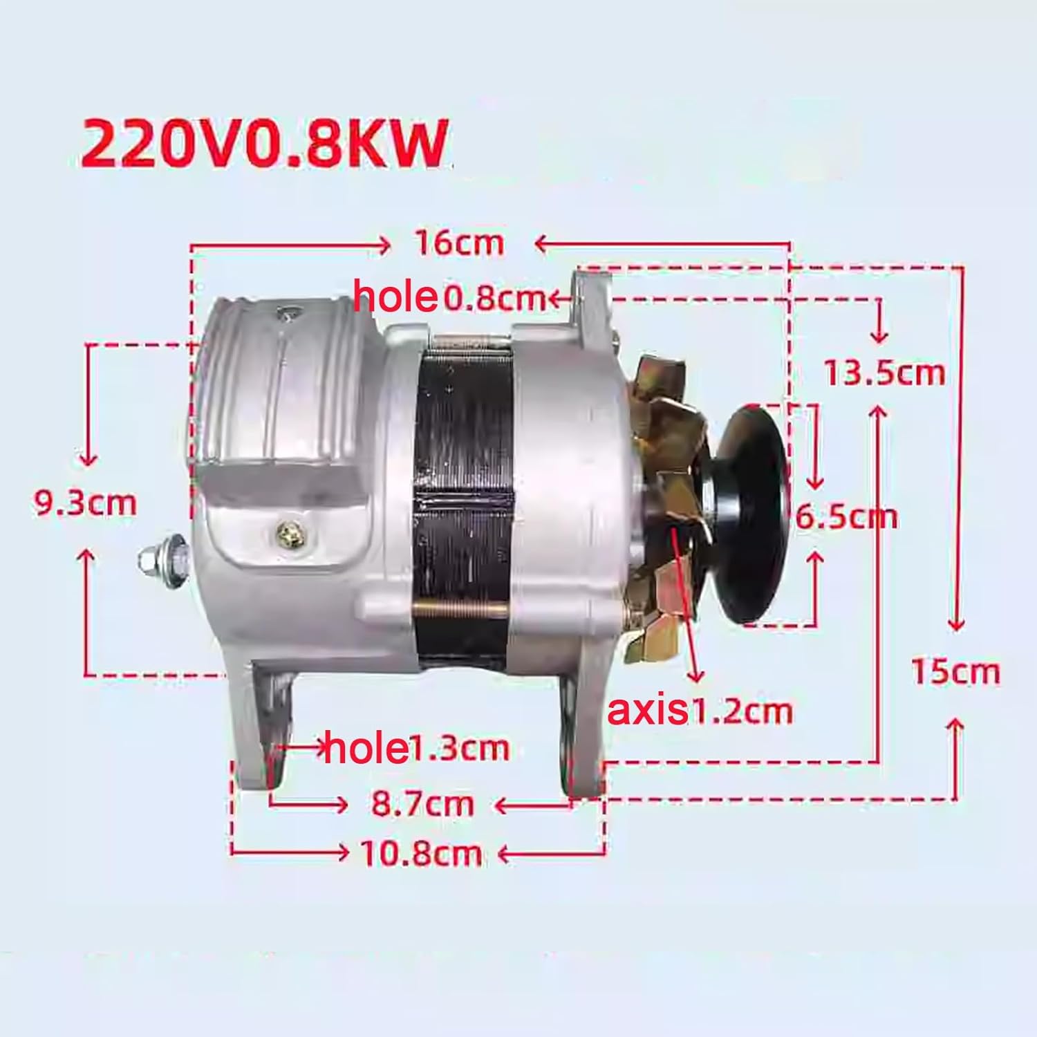 Specification:Rated power 800WOutput type: AC single phaseRated voltage: 220VThe motor is a high-frequency generator (frequency other than 50Hz)It is suitable for pure resistance electrical appliances such as lamp lighting, and cannot bring electrical appliances such as computers, refrigerators, fans, etc.,Note: This generator outputs 220V household high voltage, please pay attention to safety when using it!