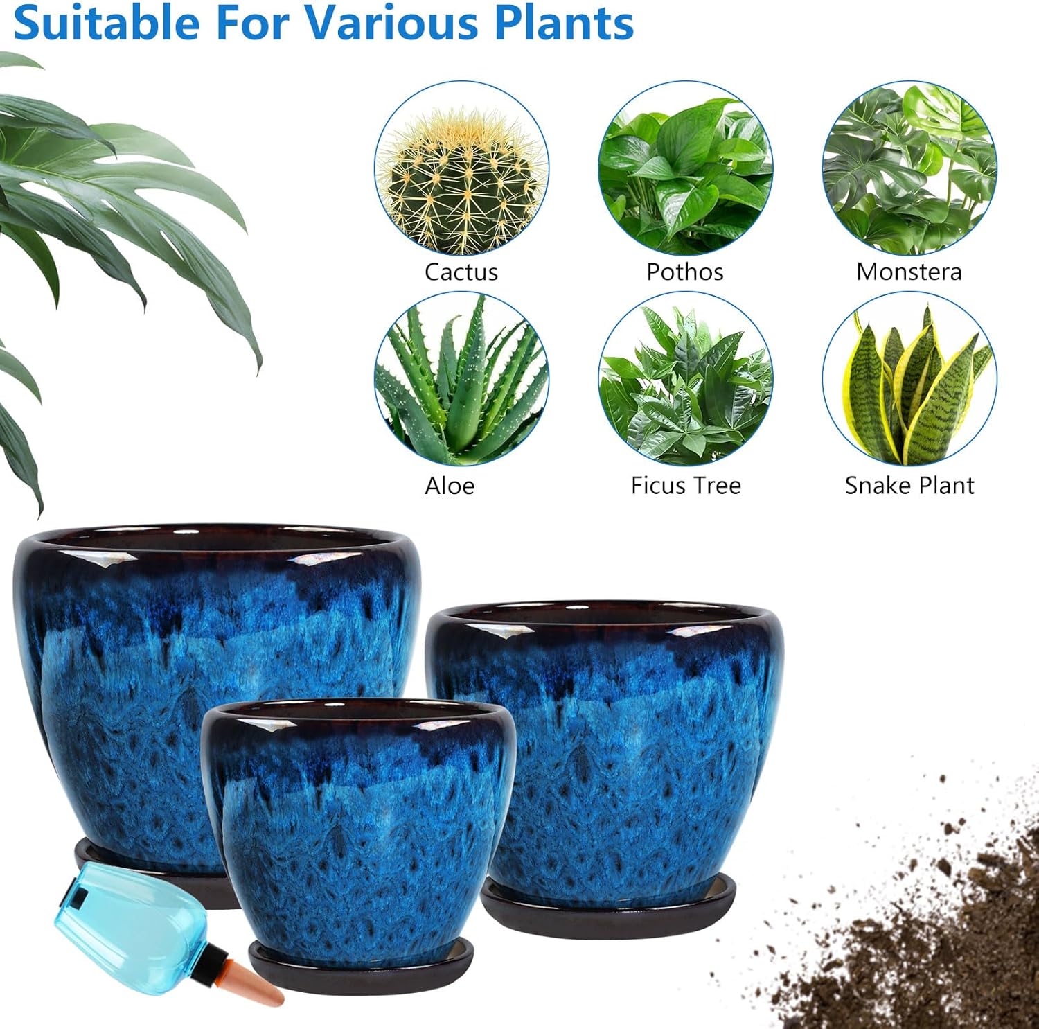 • 【Indoor Outdoor Planters】This ceramic plant pots with a variety of glazes and finishes, they provide a premium, decorative touch to both indoor and outdoor spaces, and at the same time flower pots with glaze finish is UV resistant, can be used indoors and outdoors for a long time, without worrying about fading, warping or rusting.Ceramic planters with saucer are perfect gifts.