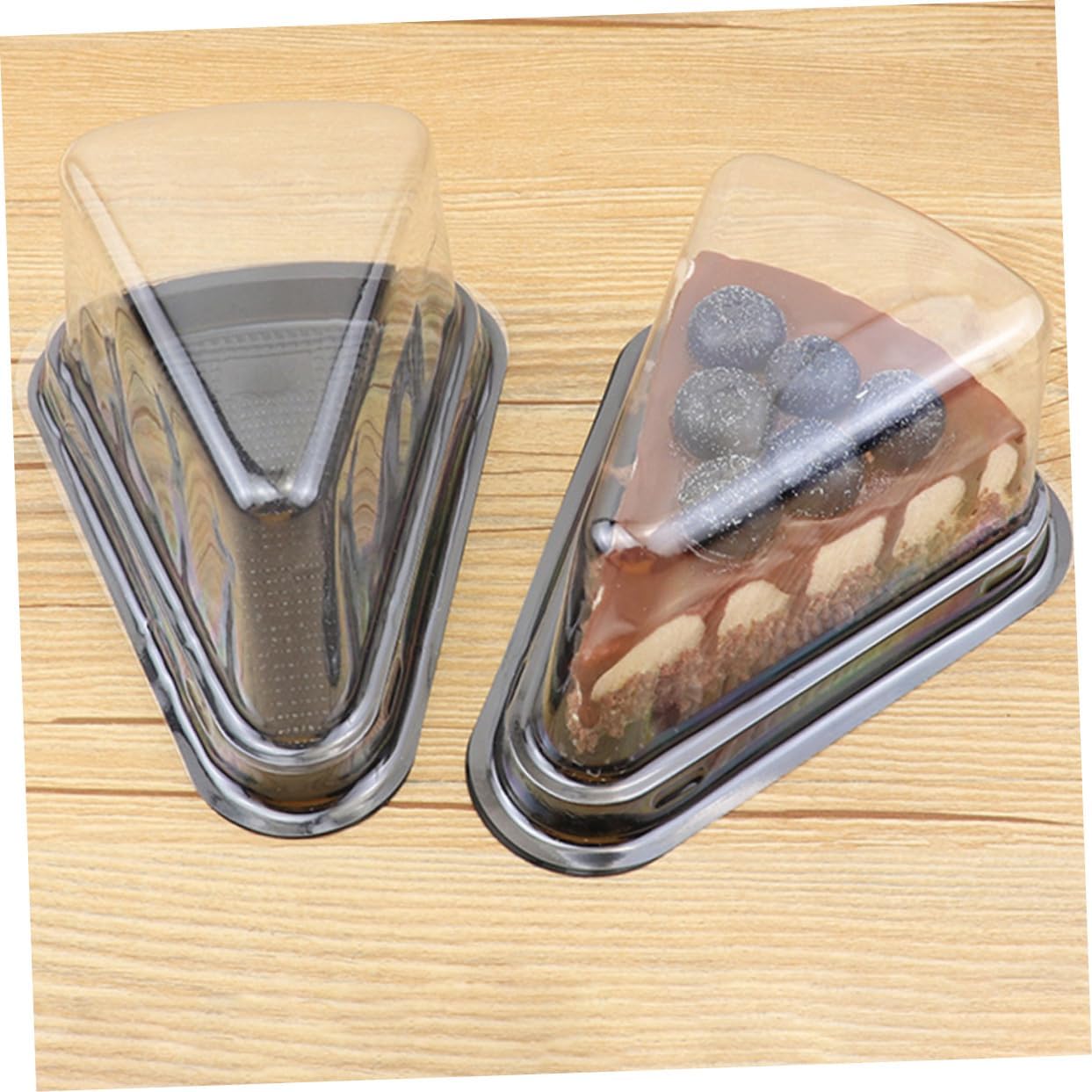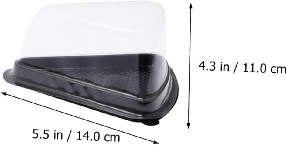 Package Include 100 x cake boxes Characteristics -Material: PET cup cake container with lid. -Size: About 14x11x75cm/55x432x295 inch Bakery Triangle Box. -The transparent lid allows you to directly see the dessert inside bakery boxes. -The buckle design, the lid and the bottom fit tightly, and the sealing effect is good baking. -Transparent lid packaging box, beautiful and small. -Using food grade PET material, and no harm handle. -The groove design of the base is non-slip and better protect food cup.Goods Informationmini cupcake carrier It is also for storing cheesecake, mousse cake and other desserts for home and bakery use.triangle cake boxes Each box features a transparent cover and can just put 1 cake in.Dessert Boxes These are triangle cake wrapping boxes, which are made of material for to use