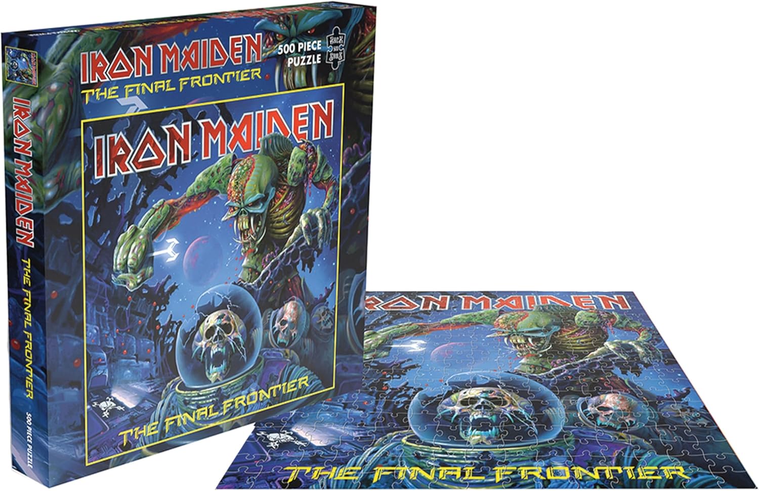 Released in August 2010, "The Final Frontier" is the fifteenth studio album by English heavy metal band Iron Maiden. The album received favourable reviews from critics and peaked at No. 1 in 28 countries. This included the United Kingdom, where it became the band's fourth release to top the UK Albums Chart. The album was ranked No. 1, No. 3, and No. 7 respectively in Metal Hammer, Kerrang! And Revolver's lists of the best albums of 2010. The song "El Dorado" won the band their first Grammy award for "Best Metal Performance". The album's iconic cover art, created by long-time contributor Melvyn Grant, is now available as a 500 piece jigsaw puzzle printed on high quality board.500 pieces Weight: 490g Jigsaw size: 41cm x 41cm Box size: 30.9cm x 30.9cm x 2.8cm