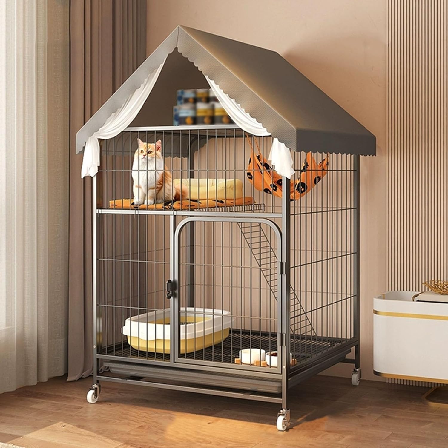 Metal Wire Folding Rabbit Cage:Creating a safe and cozy environment for your pets is essential, and our indoor dog crate and cat cage provide the perfect solution. Designed specifically for dogs and cats, this versatile metal cage offers a secure space where your pets can rest and feel at ease, especially during stressful situations such as visits from unfamiliar guests. This large metal wire cat cage, equipped with wheels, ensures easy mobility, allowing you to reposition the crate as needed. The included cat hammock and mesh foot pad add extra comfort for your furry friends, while the tray simplifies cleanup, making it an ideal choice for busy pet owners. Our cat enclosure is not just a cage; it’s a secure retreat that helps alleviate separation anxiety in dogs and provides a relaxing haven for cats. Whether you're training your puppy or giving your cat a safe space to unwind, this product is tailored to meet your needs. Constructed from durable metal, this indoor crate is designed to withstand daily use while ensuring your pets remain safe and secure. Assembly is straightforward, and with careful attention to the product details, you can enjoy peace of mind knowing your pets are well taken care of. Invest in your pet's comfort and safety with our indoor dog crate and cat cage, where functionality meets comfort. Your pets deserve a space that is both secure and inviting!